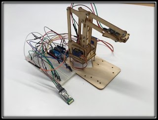 - Kit brazo madera cortado a laser y 3 servos motores SG90. Coste: ~30€