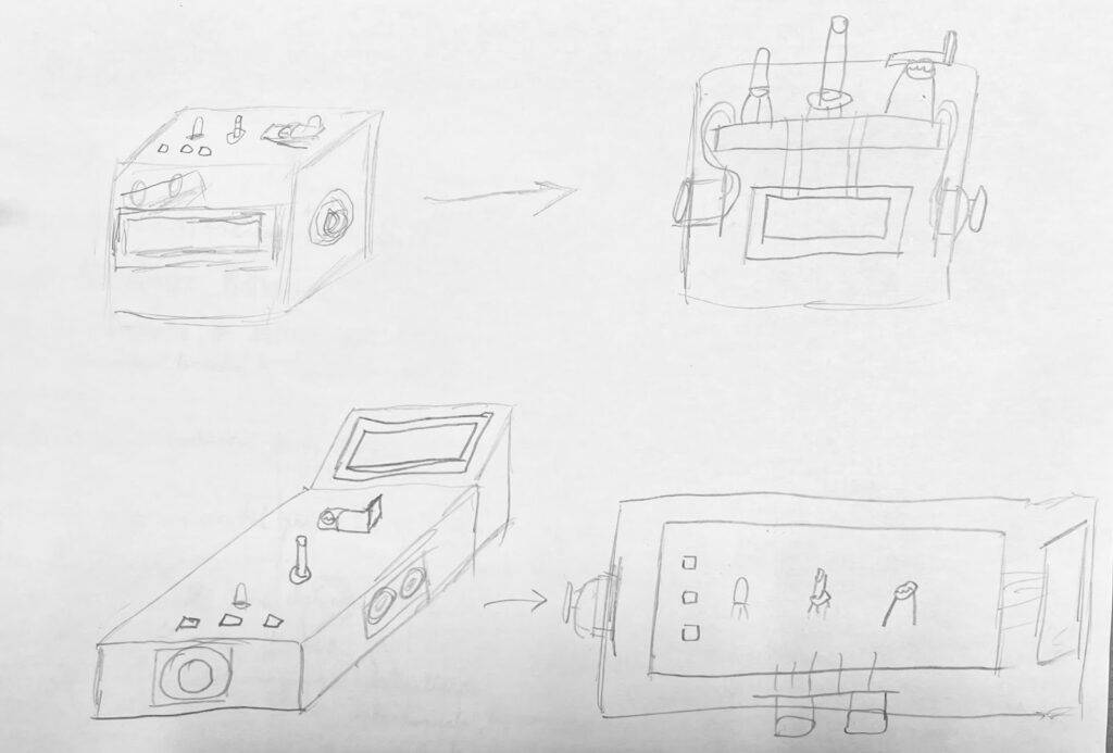 Finalmente, teniendo en cuenta el tamaño de los componentes, que obligaba a que el prototipo fuese de un tamaño medianamente grande o alargado, y sabiendo que el público objetivo principal serían niños, se decidió tomar un diseño que fuese divertido y a la vez compacto.