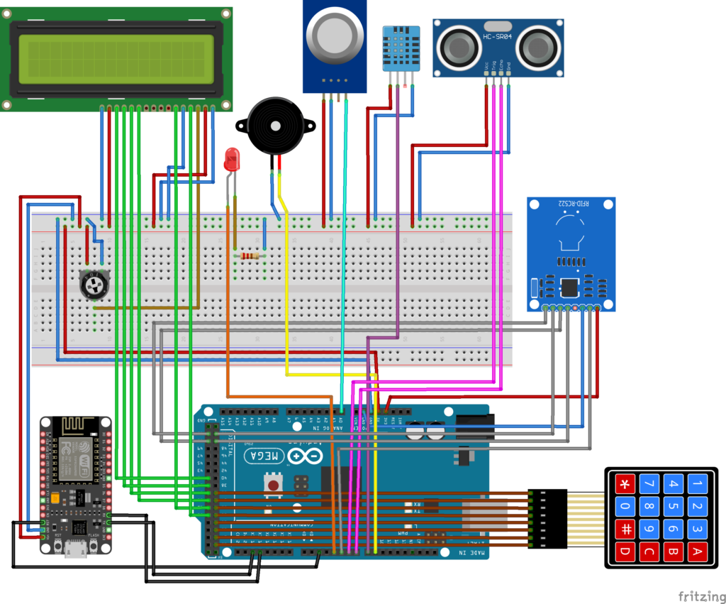 * - Sistema de alarma que utiliza múltiples sensores (Ultrasonido, Temperatura, Gas).