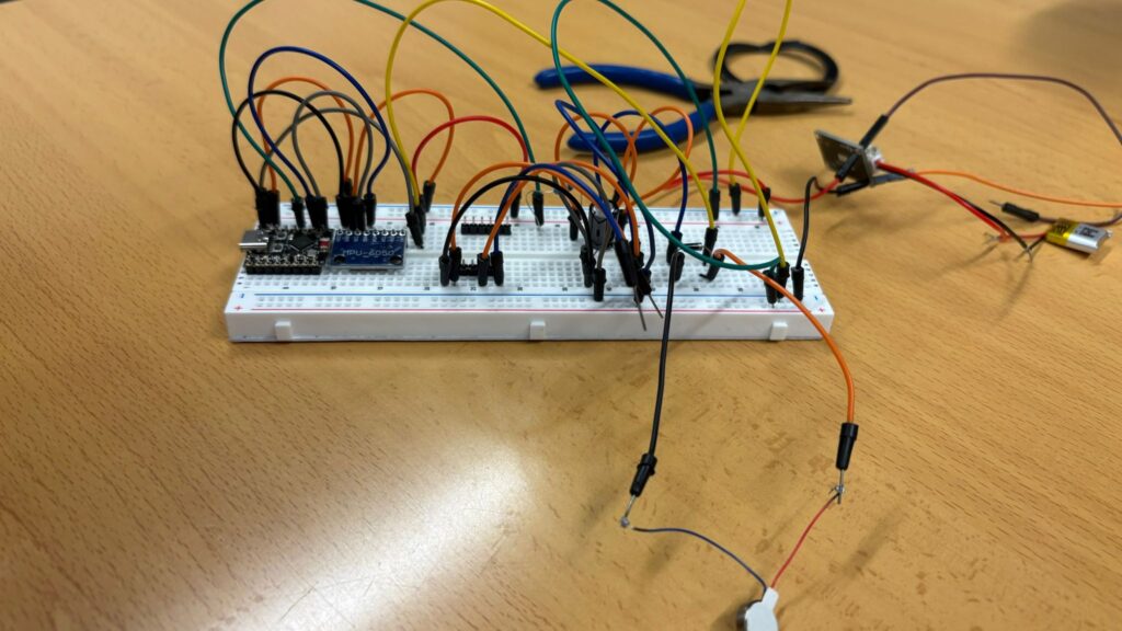 El principal problema que encontramos estuvo relacionado con la batería. Inicialmente adquirimos una de 600 mAh, muy atractiva por su reducido tamaño; sin embargo, pronto comprobamos que su potencia no era suficiente para alimentar correctamente todo el circuito. Debido a ello, optamos por cambiarla por una batería de mayor capacidad, aun sabiendo que esto implicaba renunciar a un formato más compacto. A este inconveniente se sumó que Amazon retrasó el envío de la nueva batería, lo que nos obligó a buscar alternativas mientras continuábamos con el desarrollo. Finalmente, seleccionamos una batería de 1100 mAh, que nos ofrecía ventajas claras en cuanto a autonomía y estabilidad, aunque supusiera aumentar ligeramente las dimensiones del dispositivo .