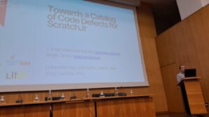 Ángel Velázquez ha presentado dos comunicaciones en el XXVII Simposio Internacional de Informática Educativa, celebrada en Viseo, Portugal. Una primera comunicación tiene por título “Hacia un catálogo de defectos del código para ScratchJr”, junto con Sergio Cavero Díaz. La comunicación identifica y clasifica defectos encontrados en programas ScratchJr desarrollados por profesores en formación en informática, lo cual permitirá mejorar su formación en el futuro.