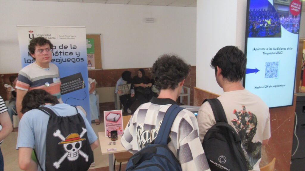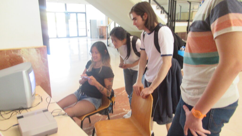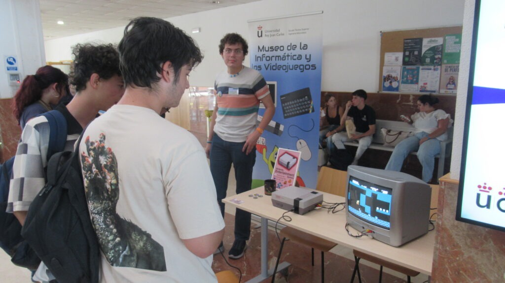 El evento tuvo lugar ayer en la planta baja del Aulario III del campus de Móstoles. Durante las cuatro horas que duró la actividad, decenas de estudiantes y profesores se acercaron para echar unas partidas y avivar la nostalgia.