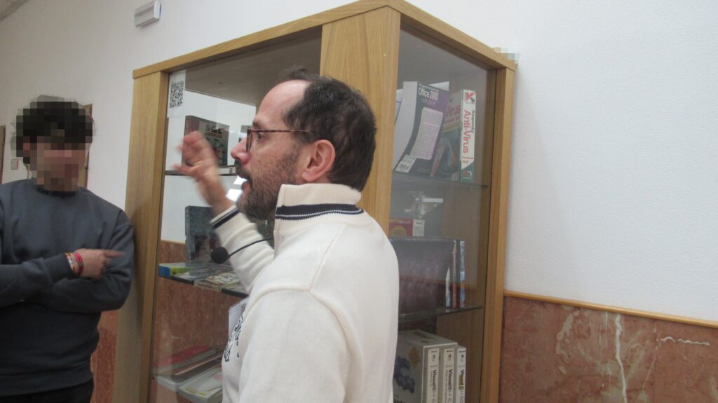 Hoy hemos tenido una nueva visita guiada para nuestro Museo. Se ha tratado de un grupo de estudiantes de 2.º Bachillerato del IES Profesor Ángel Ysern (Navalcarnero). Este instituto es importante para nuestra historia porque fue el primer centro educativo para el que realizamos una visita guiada, allá por noviembre de 2024, cuando todavía la exposición estaba a medio montar. Algunos de los estudiantes recordaban este hecho y mostraron mucho interés al comprobar la exposición completa.